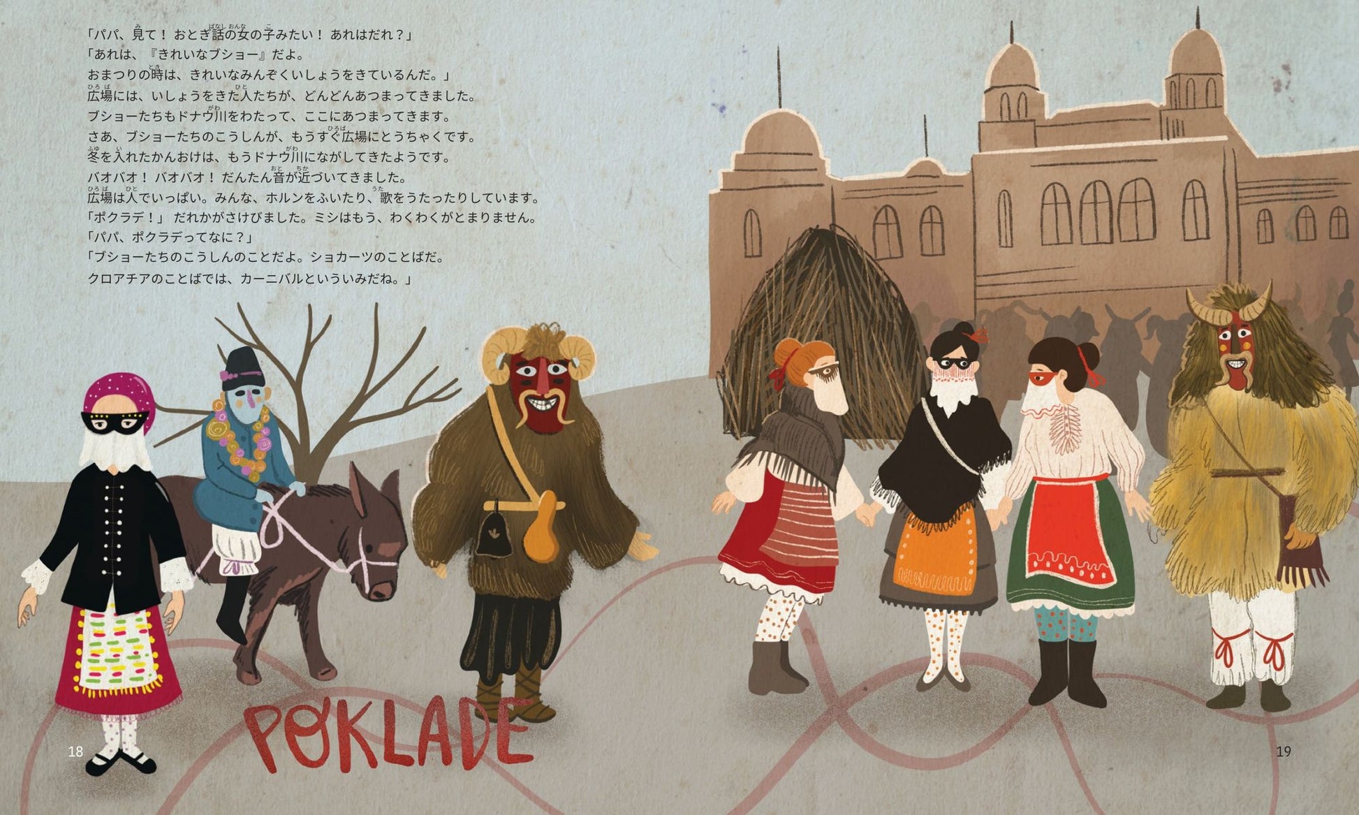 寒くて退屈な2月のある日、ミシは、こわい顔をかいて窓に飾ってあそんでいました。帰ってきたパパは、絵を見て言いました。「ブショーのおめんじゃないか!」そして、いいことを思いついたのです。それは、ミシとキツネのロークシュをつれて、モハーチの町に出かけ、ブショーのおまつりに参加する事!ハンガリーの習慣や、記念日、すばらしい伝統をタカーチ・ビクトリアのすてきな絵によるこの物語で子どもたちに伝えます。